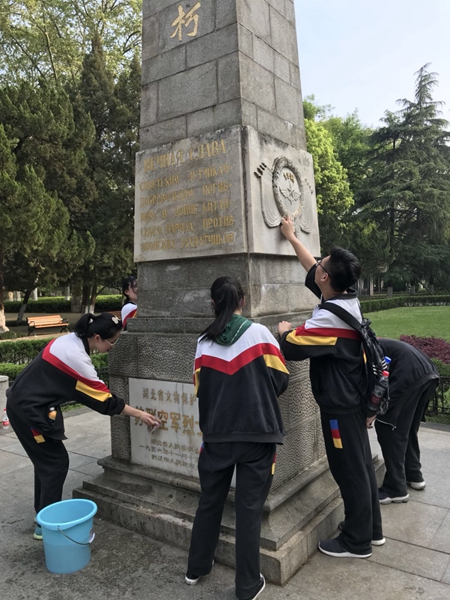 在輔導(dǎo)員徐琳老師的組織下,10名優(yōu)秀團(tuán)員規(guī)范穿著校服,佩戴團(tuán)徽,從學(xué)校乘地鐵前往解放公園蘇軍烈士墓。