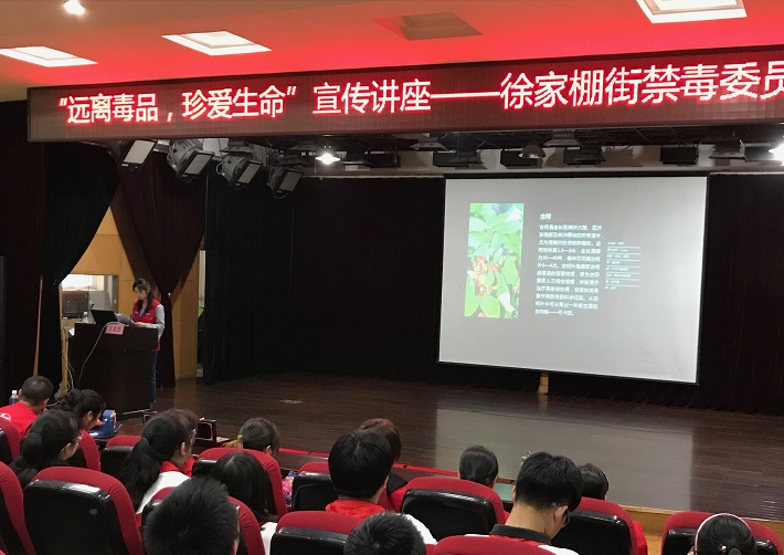 為進(jìn)一步加強(qiáng)學(xué)校禁毒宣傳教育工作力度,增強(qiáng)自我防護(hù)意識(shí),提高廣大師生識(shí)毒、防毒、拒毒與對(duì)毒品的辨別能力,促進(jìn)校園和諧穩(wěn)定發(fā)展,學(xué)工處副主任曾國斌及初中年級(jí)主任吳海林特聯(lián)系徐家棚禁毒委員會(huì),于5月11日下午班會(huì)時(shí)間在我校二報(bào)告廳給初二全體師生開展了“遠(yuǎn)離毒品 珍愛生命”宣傳講座。
