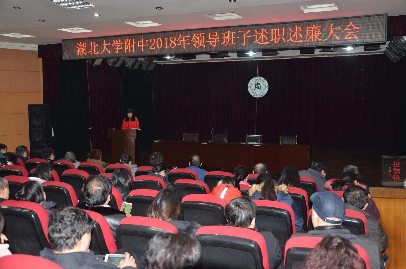2019年1月15日下午,學(xué)校2018年度領(lǐng)導(dǎo)班子及班子成員履職盡責(zé)暨黨風(fēng)廉政建設(shè)大會在二樓報告廳舉行。湖北大學(xué)紀委副書記謝鑒同志、湖北大學(xué)紀委辦公室副主任石光紅同志、監(jiān)察處主任科員魏文杰同志參加會議并查閱了學(xué)校黨風(fēng)廉政建設(shè)相關(guān)資料。會議由學(xué)校黨總支書記何鳳桃同志主持。