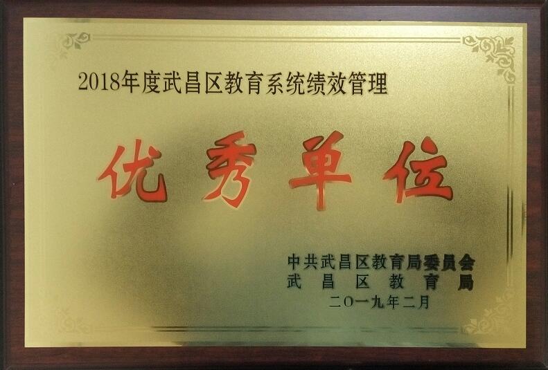 學校獲2018年度武昌區(qū)教育系統(tǒng)績效管理優(yōu)秀單位