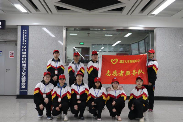 3月5日是毛澤東同志題詞“向雷鋒同志學(xué)習(xí)”56周年紀(jì)念日,也是第20個(gè)“中國(guó)青年志愿者服務(wù)日”。為進(jìn)一步弘揚(yáng)“奉獻(xiàn)、友愛、互助、進(jìn)步”的志愿者精神,發(fā)揮青春正能量作用,3月5日下午,湖北大學(xué)附屬中學(xué)校團(tuán)委、學(xué)生會(huì)組成的志愿者服務(wù)隊(duì)中的11名同學(xué)來到地鐵七號(hào)線湖北大學(xué)站開展志愿者服務(wù)活動(dòng)。