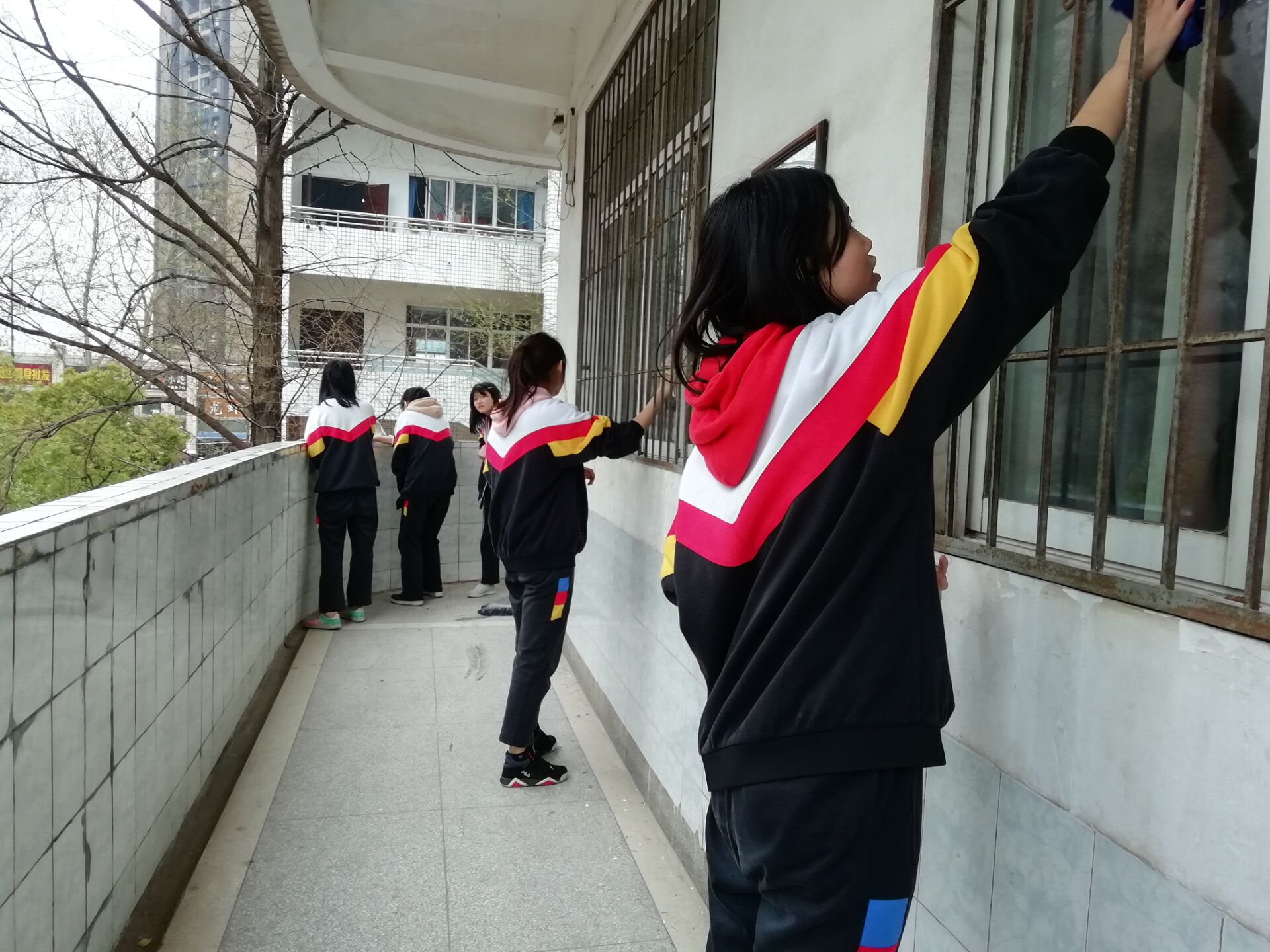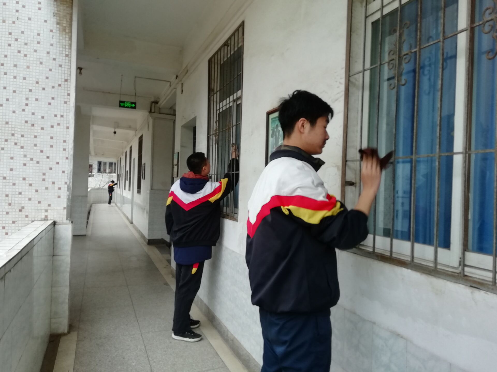周五下午綜合課,全體同學(xué)拿起了清掃工具分成五個小組跟隨小組長分配到科技樓五個樓層進行清潔。在活動中,同學(xué)們掃地,擦瓷磚、門,清理落滿樹葉的窗槽。同學(xué)們在勞動過程中相互配合,分工明確,十分默契。雖然“汗水與塵土齊飛”,但是同學(xué)們臉上都洋溢著快樂的笑容,深刻體會著志愿者精神的豐富內(nèi)涵。經(jīng)過同學(xué)們的熱情勞作,原本落滿灰塵的科技樓變得煥然一新。