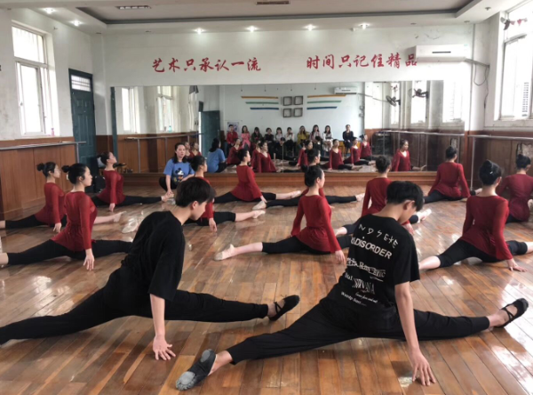 北片音樂教研活動片長雷小東老師對我校高中舞蹈教學(xué)的基本學(xué)情進(jìn)行簡單介紹后,課堂在舒緩的古典鋼琴曲中開始。本堂課主要分為兩個部分:軟開度和技術(shù)技巧,全面的將普通中學(xué)古典舞基訓(xùn)課中的軟開度、平轉(zhuǎn)、側(cè)手翻等核心基本功教學(xué)內(nèi)容進(jìn)行了展示。