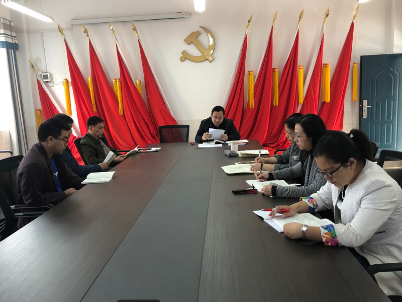為貫徹習(xí)近平總書記重要指示精神,根據(jù)學(xué)校黨總支部署的主題教育活動(dòng)的安排,2019年10月15日上午,高二年級(jí)黨支部在逸夫樓二樓黨員活動(dòng)室開(kāi)展了主題為“不忘初心 牢記使命”的主題教育學(xué)習(xí)。本次學(xué)習(xí)由年級(jí)主任兼支部書記黃成榮主持,全體9名黨員教師參加。
