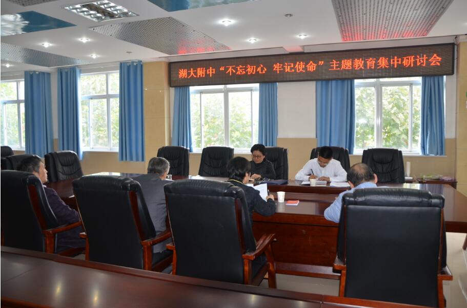 根據(jù)湖北大學(xué)“不忘初心、牢記使命”主題教育工作安排,2019年10月23日下午,湖北大學(xué)主題教育巡回指導(dǎo)組第八組領(lǐng)導(dǎo)來我校指導(dǎo)開展集中研討活動。附中領(lǐng)導(dǎo)班子成員參加了交流研討。
