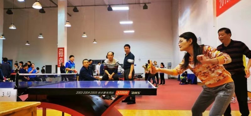 比賽中,參賽職工們揮舞球拍,紛紛展現(xiàn)直拍、橫拍、扣球、旋轉球、弧線球等球技,引得觀眾不時傳出熱烈的喝彩聲。