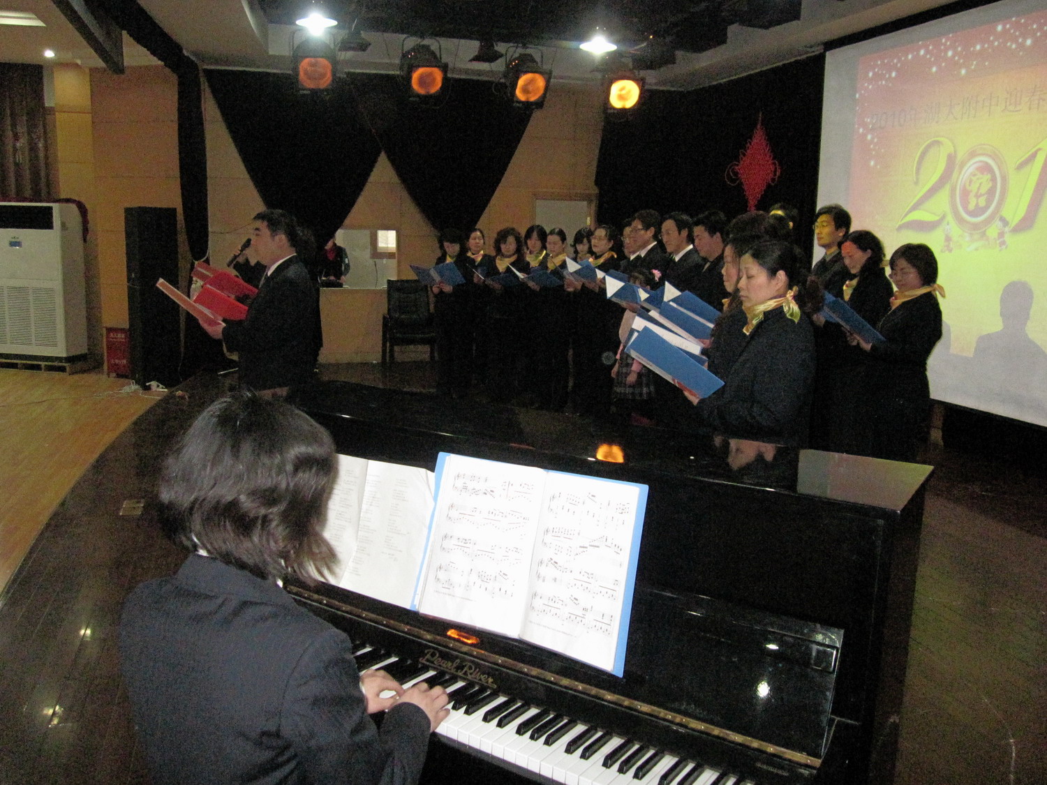 活動結(jié)束前,黨總支書記庹大猛用 “思想工作政治工作天天做工作 科學(xué)發(fā)展和諧發(fā)展年年有發(fā)展”的對聯(lián)表達對學(xué)校的美好祝愿,各年級部門負(fù)責(zé)人也紛紛用對聯(lián)獻上新春祝辭。活動在《明天會更好》的音樂聲中落下帷幕。