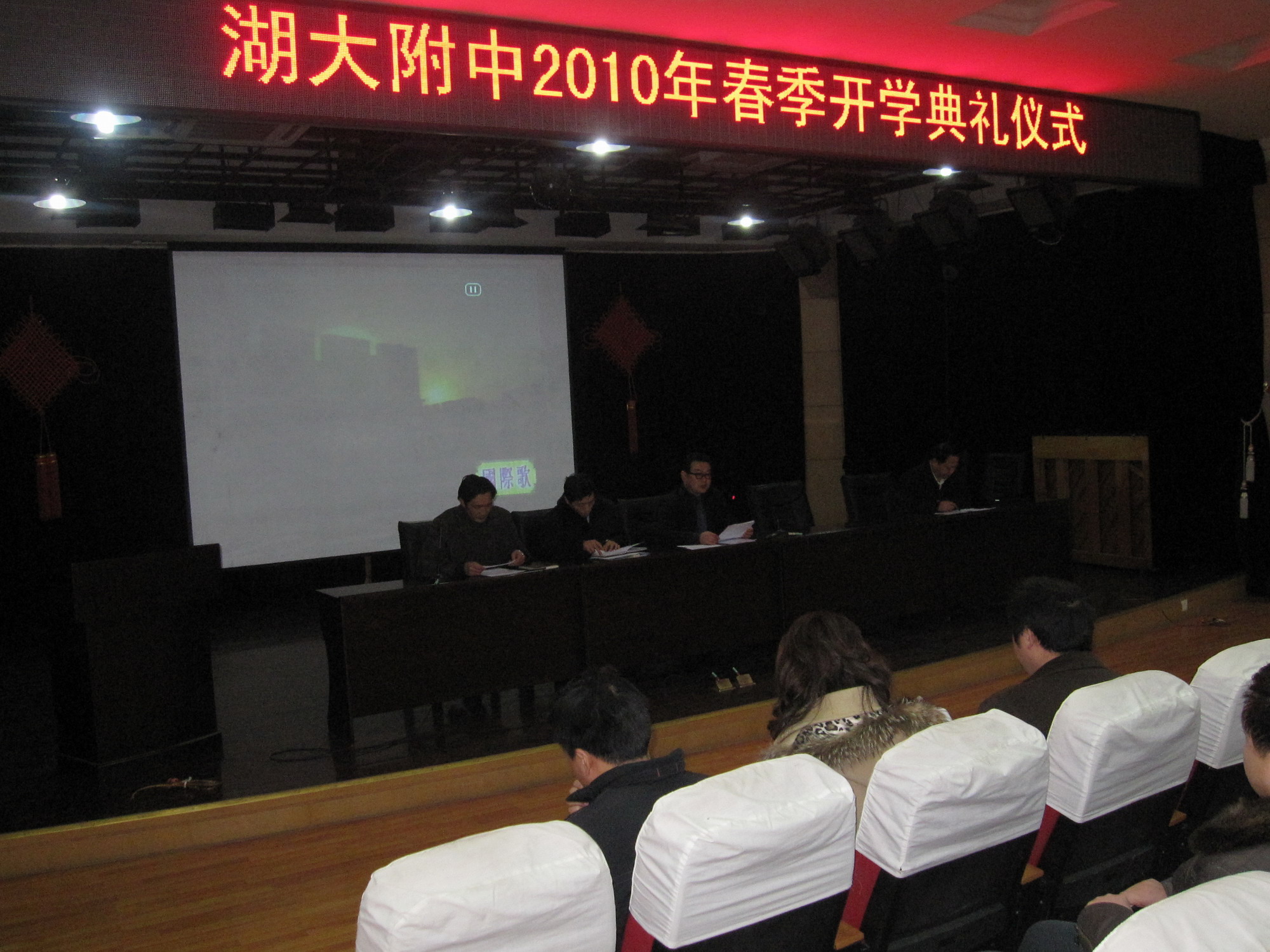 全校教職工在二樓報(bào)告廳參加大會(huì),全校學(xué)生在教室收看了現(xiàn)場(chǎng)直播。