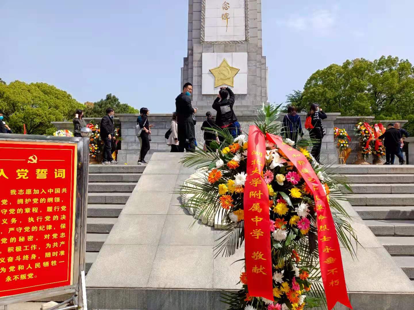 4月17日上午10點半,黨員們到達黃麻起義和鄂豫皖蘇區(qū)革命烈士陵園。