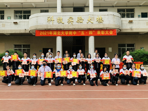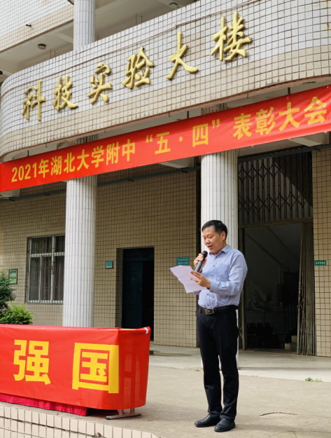 5月7日下午湖北大學(xué)附屬中學(xué)紀(jì)念五四運(yùn)動102周年“青春向黨,奮斗強(qiáng)國”新團(tuán)員入團(tuán)儀式暨五四表彰大會在學(xué)校操場隆重舉行。校長李明華、黨總支書記何鳳桃、副校長陳衛(wèi)東、副校長衛(wèi)月琴出席大會并為先進(jìn)集體和個人頒獎。學(xué)工處、校團(tuán)委、各年級負(fù)責(zé)人及全校師生參加大會。