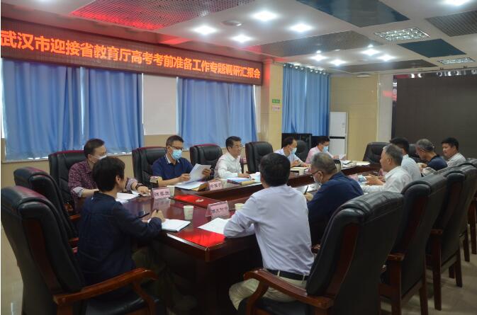 2021年5月27日下午,以省政府教育督導(dǎo)室副主任督學(xué)鄧立紅為組長、二級巡視員王洪波為副組長的檢查組一行5人來我校調(diào)研檢查高考考前準(zhǔn)備工作。武漢市教育局副局長王池富、市招考辦主任馮農(nóng),武昌區(qū)教育局副局長吳承斌及市區(qū)招辦負(fù)責(zé)人全程陪同檢查。