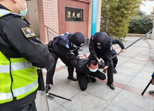 4:25分,保安發(fā)現(xiàn)持刀暴恐分子試圖闖入校園,先期阻攔其進(jìn)入并迅速報(bào)告學(xué)工處,學(xué)工處立即向應(yīng)急指揮組責(zé)任人衛(wèi)月琴副校長(zhǎng)報(bào)告相關(guān)情況,并第一時(shí)間撥打“110”報(bào)警。所有防暴組成員持器械立刻到校門廣場(chǎng),據(jù)守對(duì)應(yīng)樓道,阻止暴恐分子進(jìn)入逸夫樓或教學(xué)樓。余家頭派出所民警接警后迅速趕到現(xiàn)場(chǎng),大家一起最短時(shí)間制服了暴恐分子。