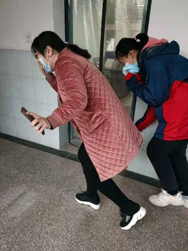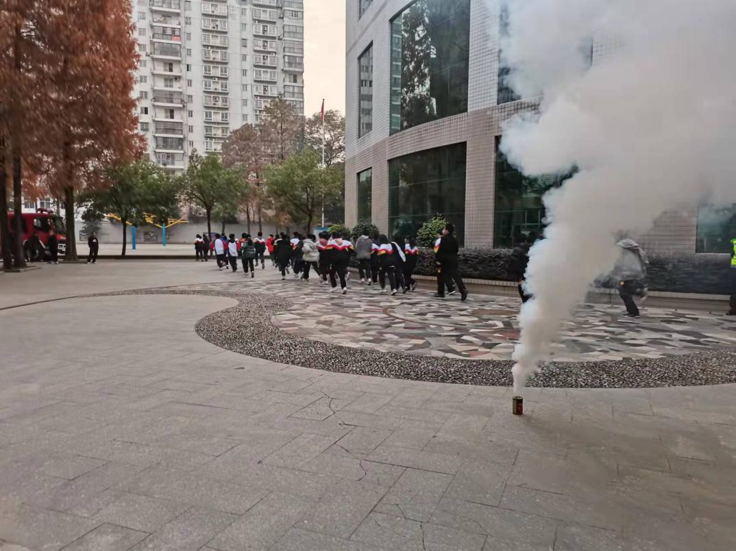 4:35分,消防警報(bào)拉響,各樓層同時(shí)引燃煙霧彈,班主任和科任教師立即趕到教室或樓道口,指揮學(xué)生按照規(guī)定路線迅速撤離教室。在撤退過程中,師生們用濕毛巾捂住口鼻,彎腰貼墻下樓到操場(chǎng)集合。各班迅速清點(diǎn)人數(shù),學(xué)生干部匯總后報(bào)告給衛(wèi)月琴副校長(zhǎng)。在今天的消防安全疏散演練中,全校師生能夠按照學(xué)校的統(tǒng)一要求和指令,較快地撤到了指定地點(diǎn)。從聽到警報(bào)聲到全部師生撤出教室、辦公室,大概用了4分鐘時(shí)間,沒有發(fā)生擁擠、踩踏等不安全的事故,基本上達(dá)到了消防疏散演練的要求。