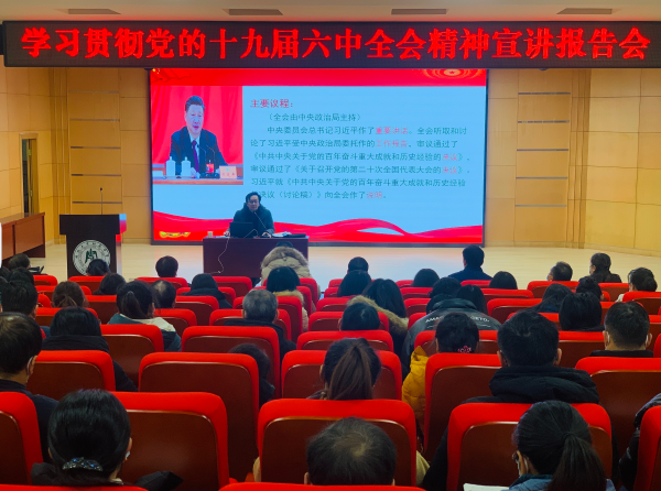 為深入學習貫徹黨的十九屆六中全會精神,12月28日,我校邀請湖北省委宣講團成員、湖北大學馬克思主義學院院長、博士生導師熊友華教授為全校教職工作了題為《百年奮斗鑄輝煌 勇毅前行續(xù)榮光》的宣講報告。