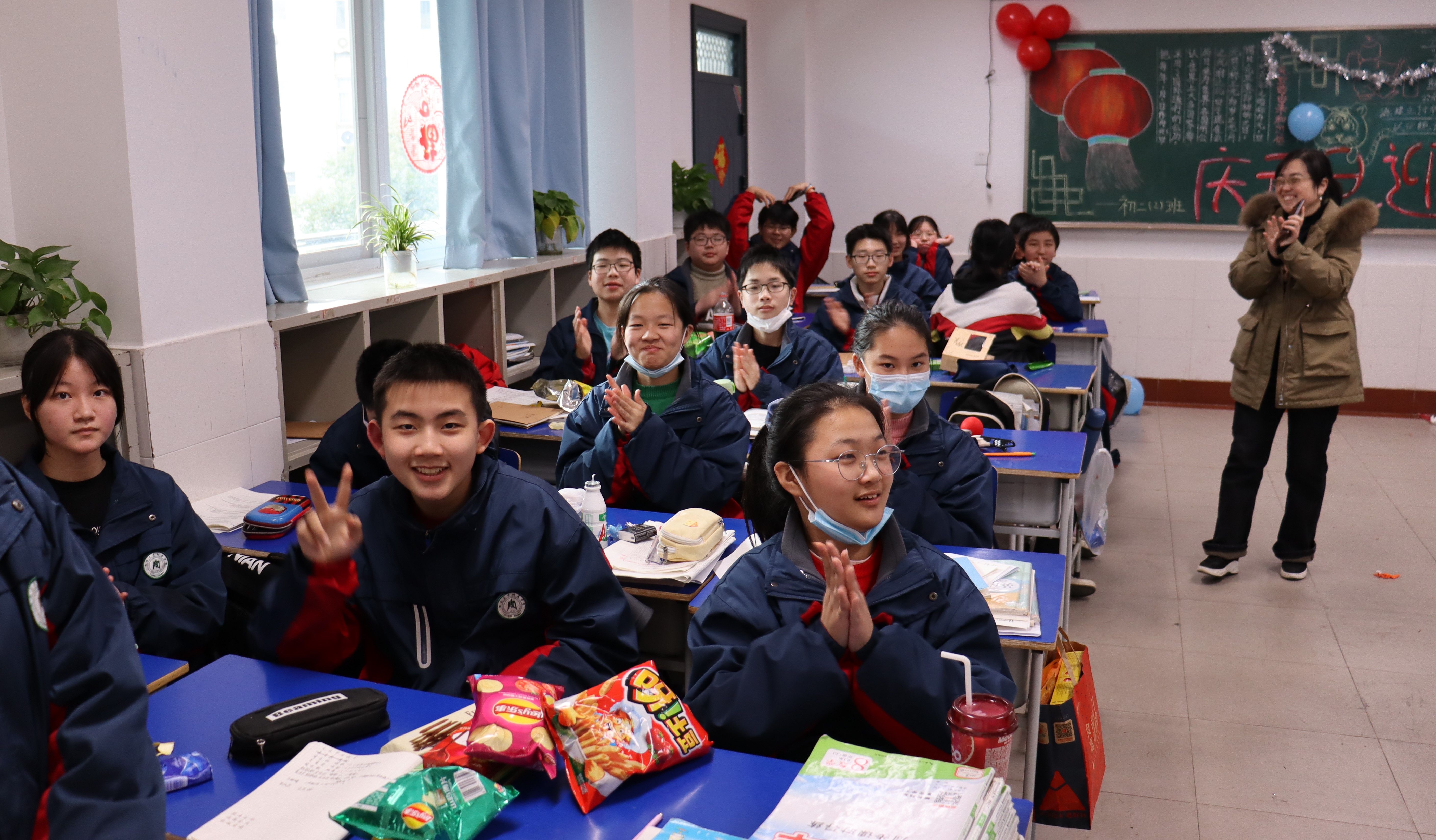一大早,各班就利用課間緊鑼密鼓地布置起教室,貼拉花、吹氣球、練節(jié)目......每個人的臉上都洋溢著新年的喜悅,每個教室都被同學們布置得溫馨、喜慶,每個班級都傳遞處老師和同學們的歡聲笑語。