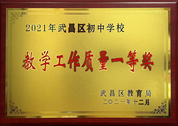喜報:熱烈祝賀我校獲評2021年武昌區(qū)初中學校教學工作質量一等獎