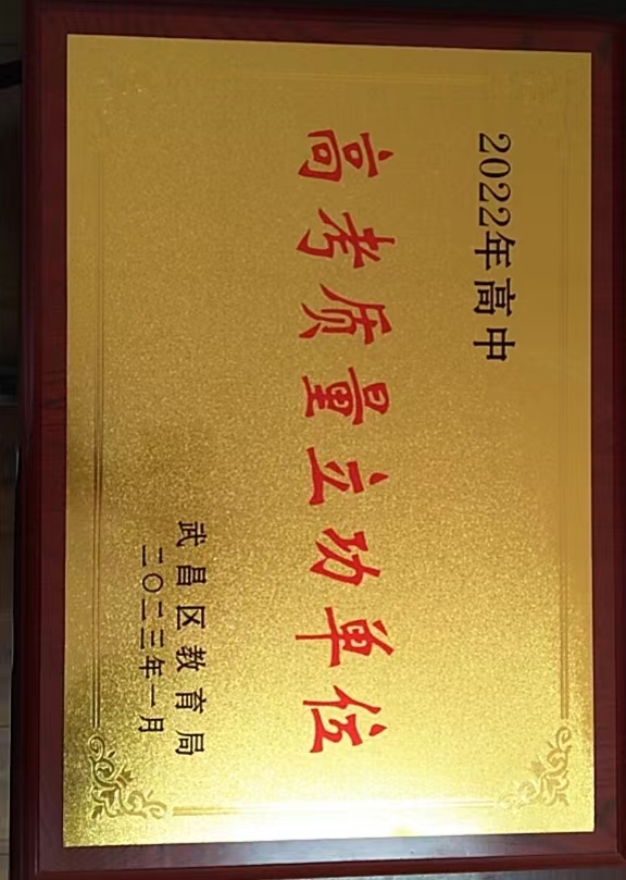 2023年1月——學(xué)校榮獲2022年高中高考質(zhì)量立功單位(武昌區(qū)教育局)