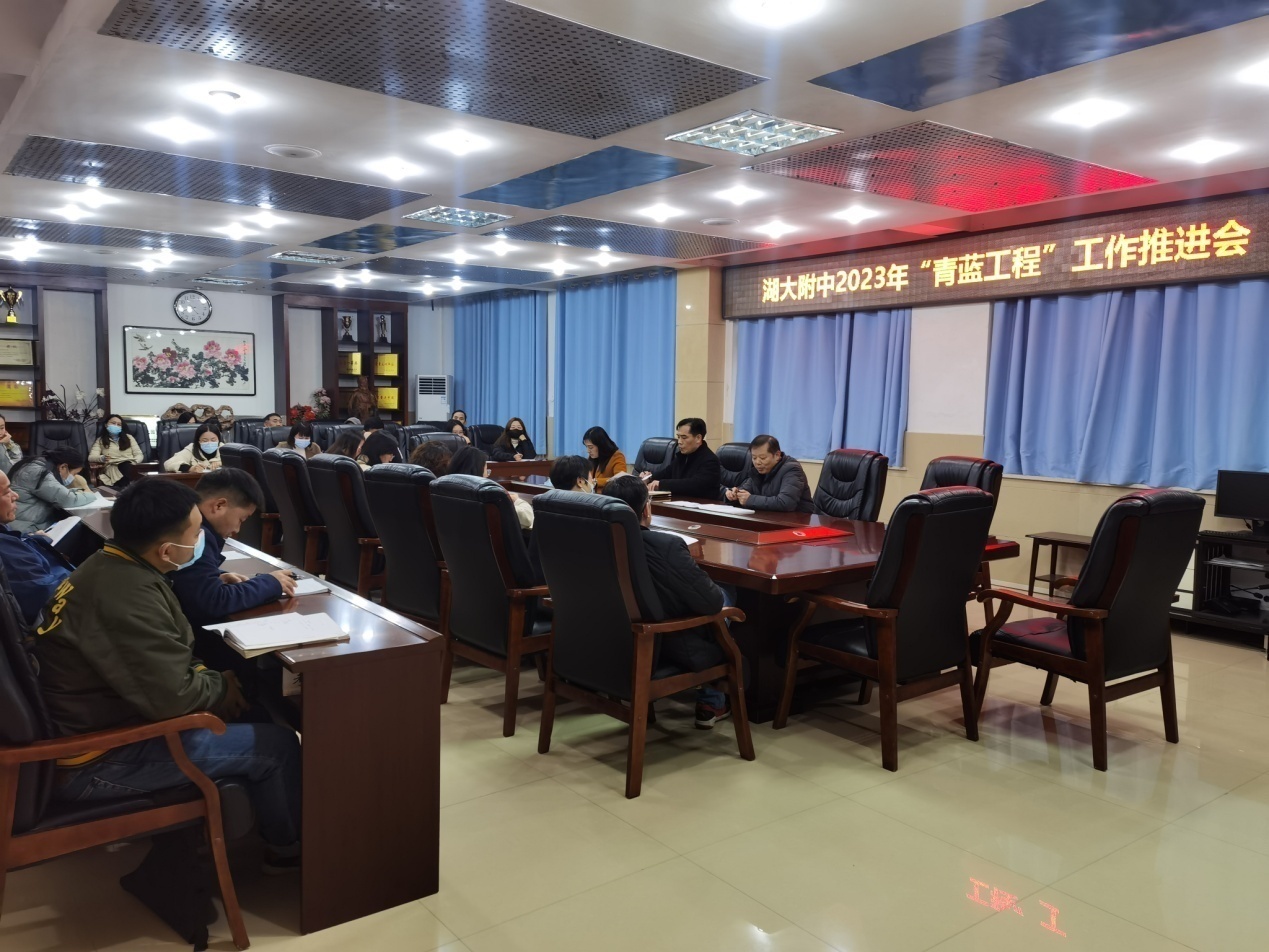 2023年11月29日下午第四節(jié)課,學校在二樓會議室召開2023年“青藍工程”工作推進會。副校長陳衛(wèi)東主持會議并講話,教師工作處陳曉方主任和周鈺副主任分別就相關(guān)工作作了布置。