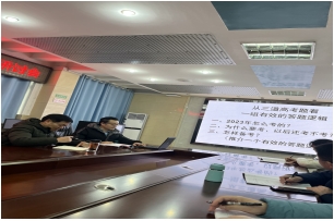 高三年級謝寬有老師圍繞“構建人類命運共同體”時事主題發(fā)言。在題為《從三道高考題看一組有效的答題邏輯》的發(fā)言中,他開篇提出三連問:2023年怎么考的?為什么要考、以后還考不考?怎樣備考?然后從湖北卷、江蘇卷、浙江卷三個關于人類命運共同體的高考題探尋高考命題呈現(xiàn)的一個特點:緊扣時代脈搏,時事政治素材鮮活、豐富,呈現(xiàn)方式新穎、靈活,持續(xù)強化育人功能,系統(tǒng)性地加強政治導向與價值引領的積極作用,引導學生堅定“四個自信”。謝老師推介了“三新”背景下仍然有效的一組答題邏輯:遵循事實邏輯、問題邏輯和理論邏輯的答題范式。