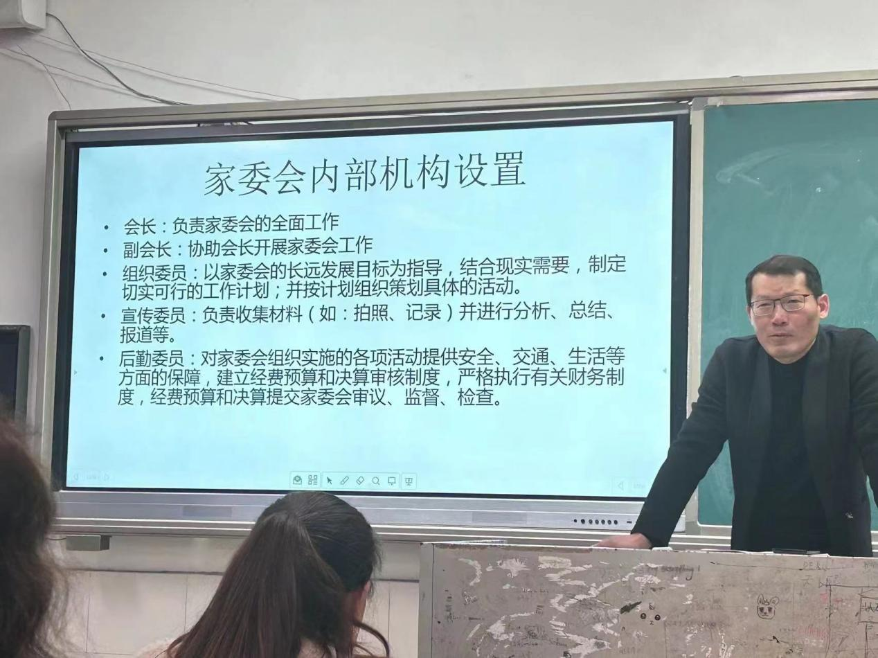 胡主任以自己的教育理念開(kāi)場(chǎng),提出學(xué)生“成人主要在家庭教育;成才主要在學(xué)校教育;成事主要在社會(huì)教育”,因此學(xué)生的成長(zhǎng)需要家校的配合。而后,胡主任從家委會(huì)的工作入手,向各位家長(zhǎng)委員介紹了家委會(huì)的性質(zhì)、基本職責(zé)、基本功能、組織宗旨,以及家委會(huì)的發(fā)展背景、建立意義和工作展望,說(shuō)明了家委會(huì)是按照一定的民主程序,本著公正、公平、公開(kāi)的原則,在自愿的基礎(chǔ)上,選舉出能代表全體家長(zhǎng)意愿的在校學(xué)生家長(zhǎng)組成的家長(zhǎng)組織,是學(xué)校和家庭、家長(zhǎng)之間的橋梁、紐帶;列舉了家委會(huì)參與學(xué)校管理、參與教育工作、溝通學(xué)校與家庭的基本職責(zé),以及與學(xué)校共同做好德育工作、協(xié)助學(xué)校開(kāi)展安全和健康教育、支持和推動(dòng)減輕學(xué)生課業(yè)負(fù)擔(dān)、營(yíng)造良好的家校關(guān)系等基本功能。