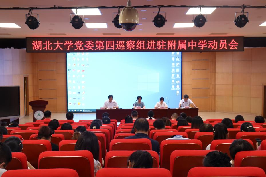 根據(jù)湖北大學(xué)黨委巡察工作的統(tǒng)一部署,2024年9月29日下午,學(xué)校第七屆黨委第一輪巡察第四巡察組進(jìn)駐附屬中學(xué)動(dòng)員會(huì)議召開。校黨委第四巡察組組長明纓、副組長劉琳琳及巡察組成員,附屬中學(xué)領(lǐng)導(dǎo)班子成員、離退休教師代表及全體教師參加會(huì)議。附屬中學(xué)校長王與雄主持會(huì)議。