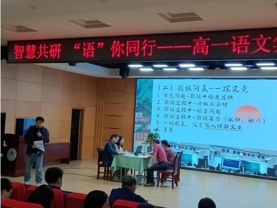為進(jìn)一步促進(jìn)教師間的交流與合作,充分發(fā)揮集體智慧,真正實(shí)現(xiàn)“以教促研”、“以研興教”,湖大附中自本學(xué)期開(kāi)始全面展開(kāi)各教研組的集備展示活動(dòng)。10月17日周四下午第九節(jié)課,湖大附中語(yǔ)文教研組高一備課組在二樓報(bào)告廳進(jìn)行了名為“智慧共研,‘語(yǔ)’你同行”的集體備課展示活動(dòng),拉開(kāi)了集備展示活動(dòng)的序幕。高一年級(jí)語(yǔ)文備課組長(zhǎng)郭文老師主持了本次集備展示活動(dòng),全體教師到場(chǎng)觀摩學(xué)習(xí)。