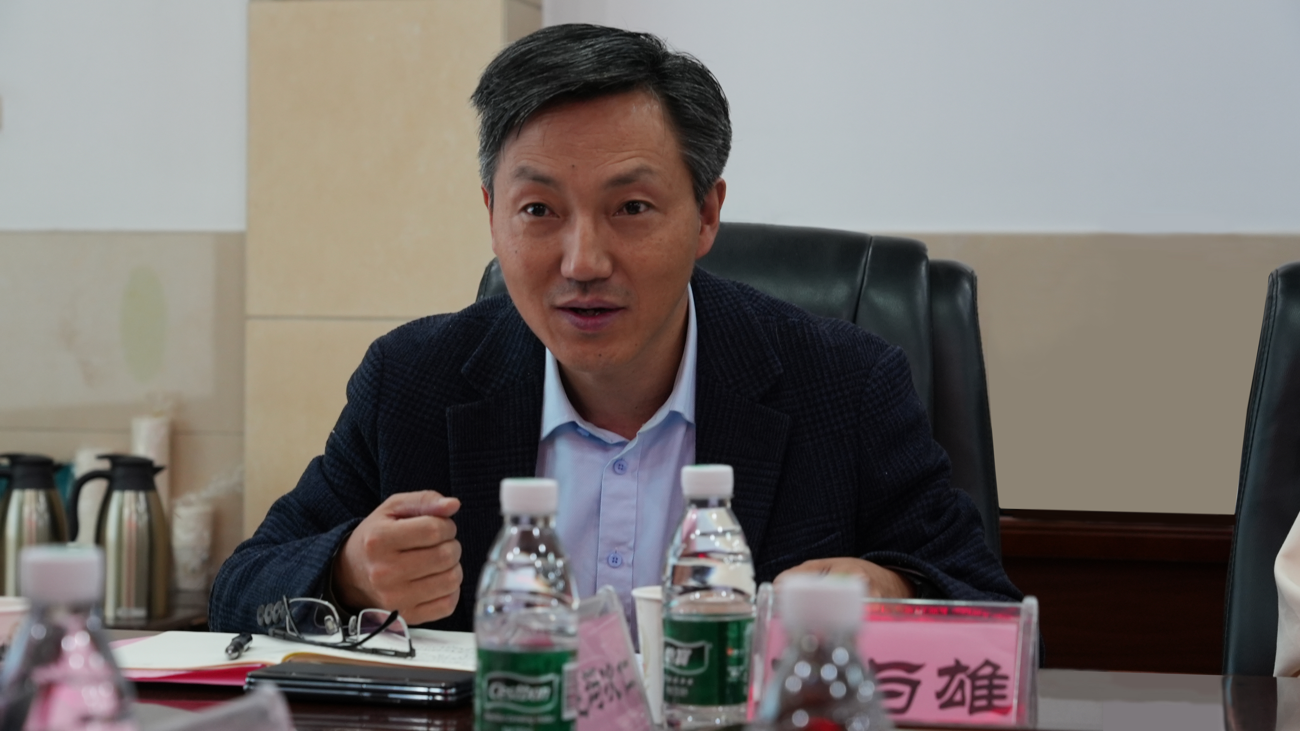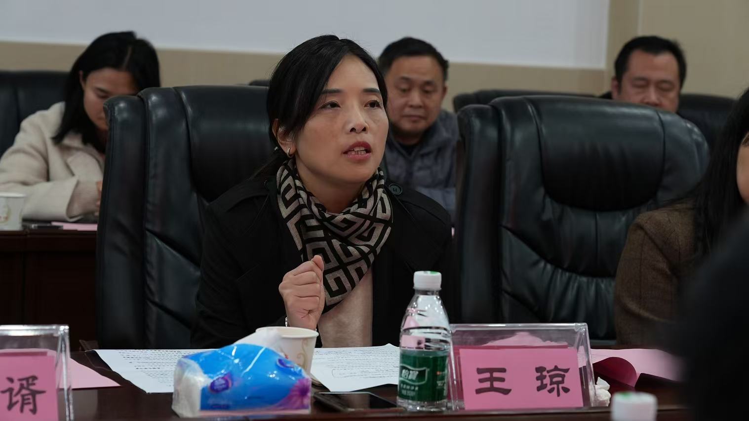 參觀結(jié)束后,考察團(tuán)一行落座二樓會(huì)議室舉行座談交流。武昌區(qū)教育局中教科周澤杰向乃東區(qū)教育考察團(tuán)分享了武昌區(qū)教學(xué)改革、教研體建設(shè)、特色發(fā)展與備考行動(dòng)等方面的實(shí)踐經(jīng)驗(yàn)。