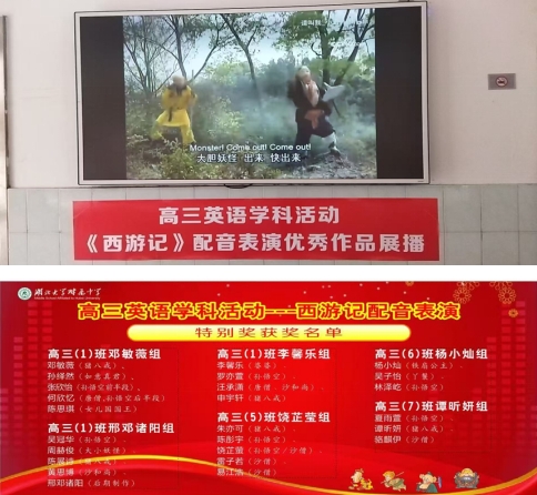 為了豐富高三學(xué)生的課外活動,增強(qiáng)英語口語表達(dá)能力,并深入了解中國優(yōu)秀傳統(tǒng)文化,提升學(xué)生的跨文化交際素養(yǎng),我校高三年級英語備課組本學(xué)期舉行了一場別具一格的《西游記》英語趣配音活動,并在1月10日下午舉行了優(yōu)秀獲獎作品的頒獎儀式。