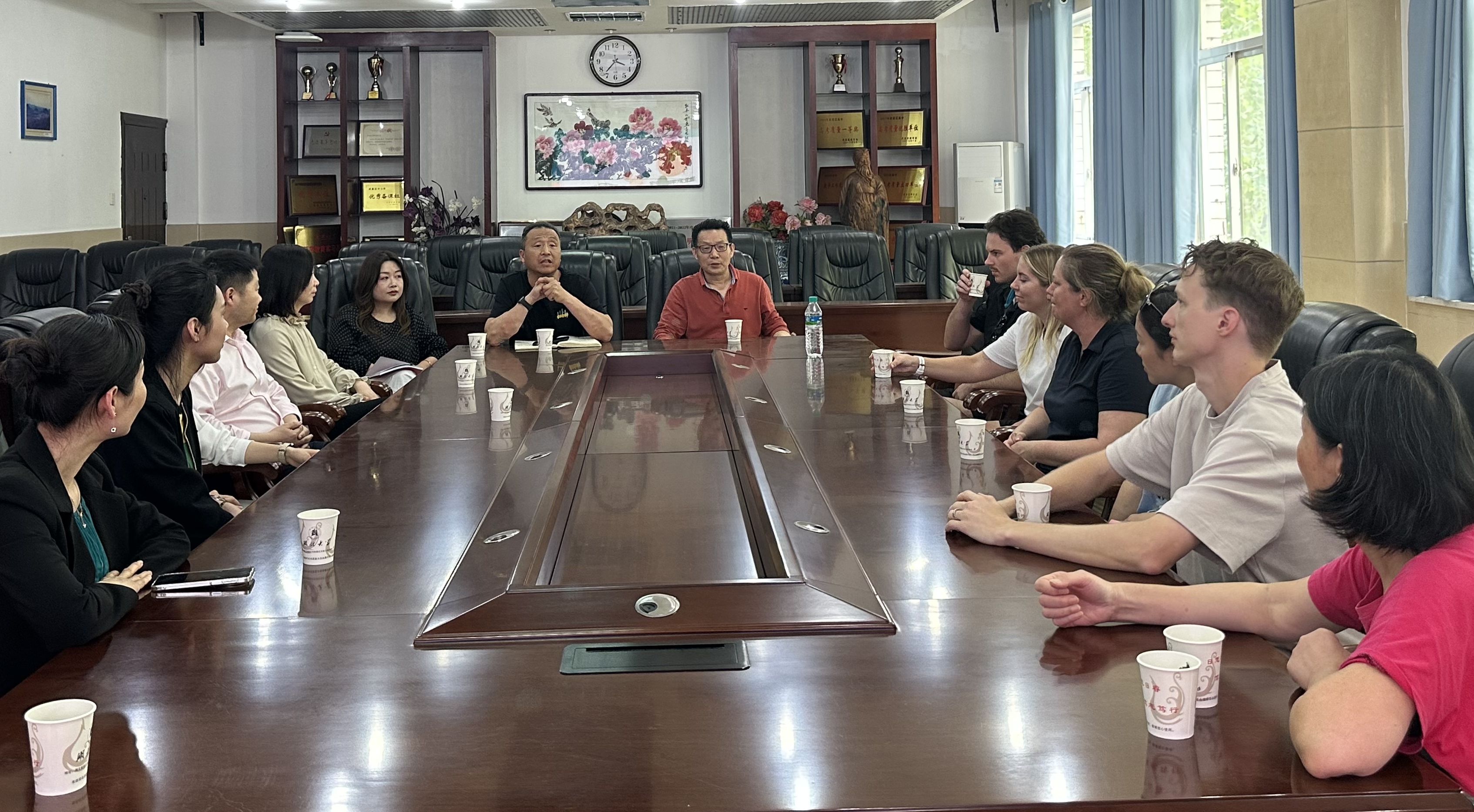 在師生互動環(huán)節(jié)如火如荼進行的同時,雙方教師代表齊聚會議室,開展教師座談會。來自中澳兩國的7名骨干教師圍繞多元文化融合、教育理念創(chuàng)新等議題展開深入探討,分享了各自在教學實踐中的成功經(jīng)驗與挑戰(zhàn),共同探討了如何在全球視野下培養(yǎng)具有國際競爭力的優(yōu)秀學生。