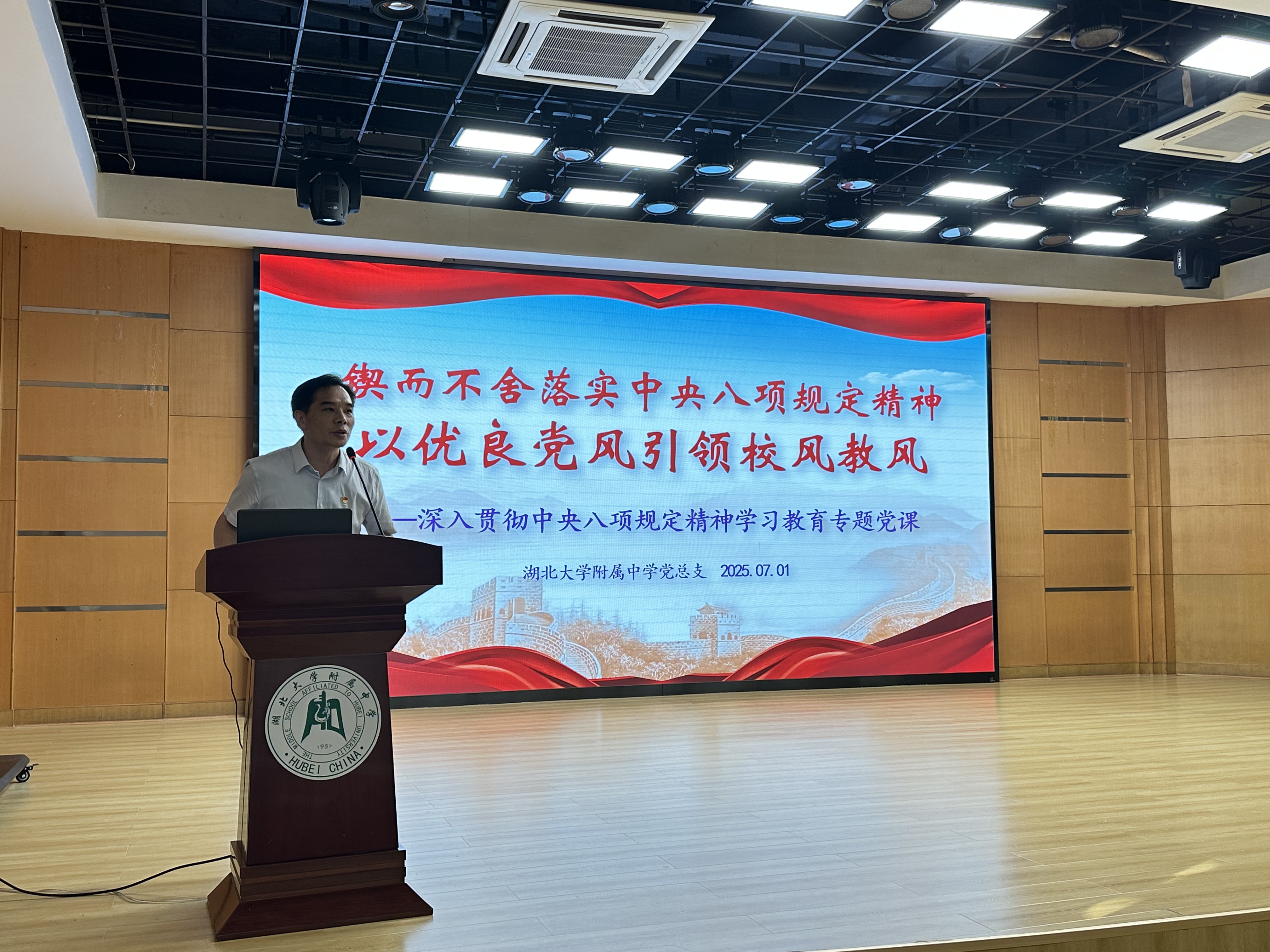 7月1日下午,在中國共產(chǎn)黨成立104周年、全校開展深入貫徹中央八項規(guī)定精神學習教育之際,學校舉行“慶七一、踐初心、強作風”暨深入貫徹中央八項規(guī)定精神學習教育專題黨課活動。全體黨員和部分教職工參加學習活動。