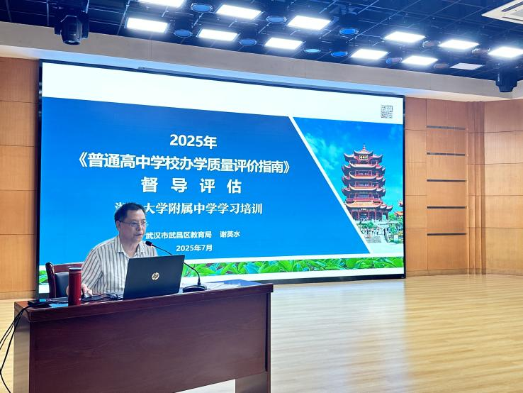 湖北大學(xué)附屬中學(xué)于2025年7月10日上午召開(kāi)全體教職工動(dòng)員大會(huì),正式啟動(dòng)迎接《普通高中學(xué)校辦學(xué)質(zhì)量評(píng)價(jià)指南》(簡(jiǎn)稱“四個(gè)指南”)區(qū)級(jí)督導(dǎo)評(píng)估的各項(xiàng)準(zhǔn)備工作,本次會(huì)議邀請(qǐng)武昌區(qū)教育局督導(dǎo)辦主任謝英水為老師們?cè)?/FONT>細(xì)解讀了“四個(gè)指南”的核心內(nèi)容和評(píng)估標(biāo)準(zhǔn)。此次培訓(xùn)旨在統(tǒng)一思想、明確任務(wù),將評(píng)估工作視為推動(dòng)學(xué)校內(nèi)涵式高質(zhì)量發(fā)展的關(guān)鍵契機(jī)。