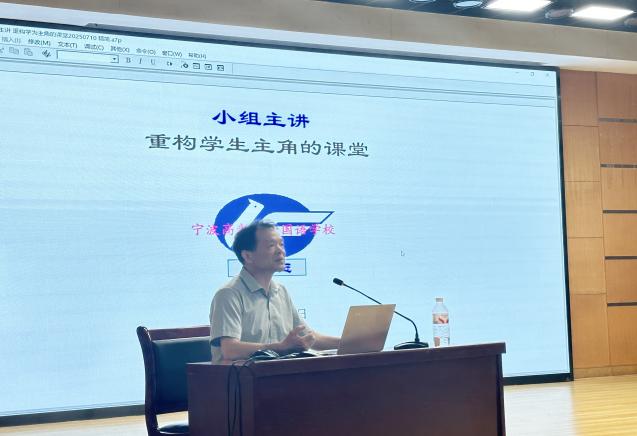 2025年7月10日下午,我校暑期校本培訓(xùn)第一階段進(jìn)行最后一場(chǎng),我們邀請(qǐng)到了寧波高新區(qū)外國(guó)語(yǔ)學(xué)校數(shù)學(xué)學(xué)科中心主任鄭華玉老師,作了“學(xué)習(xí)方式變革”的主題報(bào)告。鄭華玉老師把潛心教改十六載的實(shí)踐,濃縮在“超越與重構(gòu):‘小組主講’的課堂實(shí)踐”的報(bào)告中。他用豐富的案例、具體的方法詮釋了“學(xué)為中心”的課堂內(nèi)涵,對(duì)一線教師如何真正引導(dǎo)學(xué)生深度學(xué)習(xí)、提升學(xué)科素養(yǎng)進(jìn)行了有效培訓(xùn)和指導(dǎo)。