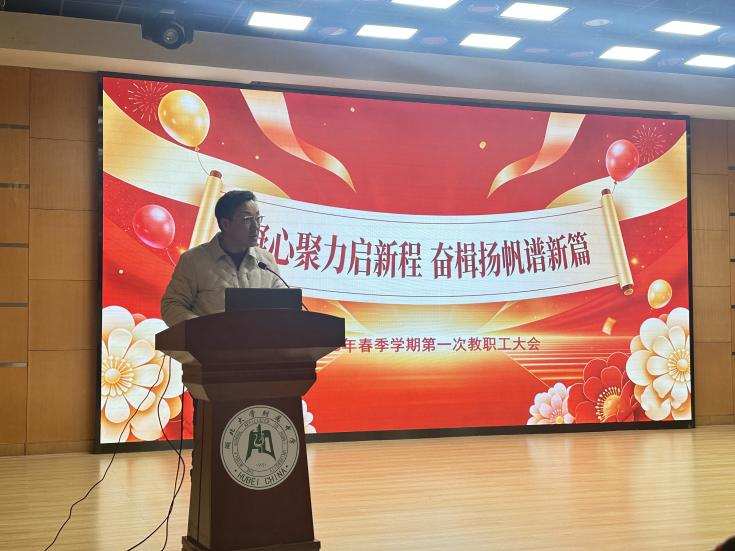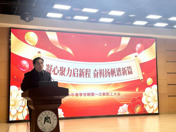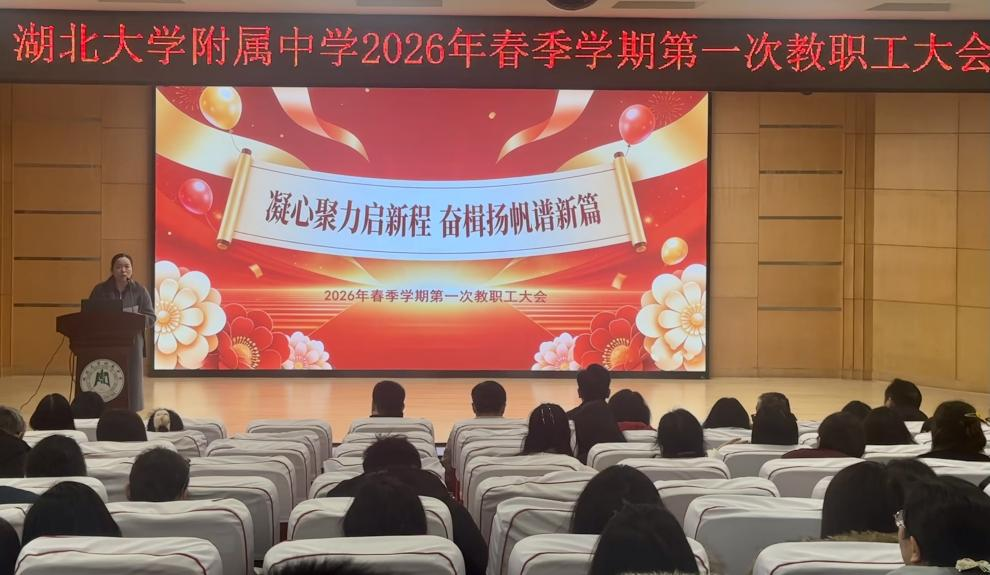 律回春暉漸,萬(wàn)象始更新。2月27日,我校召開2026年春季學(xué)期第一次全體教職工大會(huì),旨在返崗收心、凝心聚力,全面部署新學(xué)期各項(xiàng)工作,動(dòng)員全體教職工以昂揚(yáng)斗志開啟新學(xué)期征程。校領(lǐng)導(dǎo)班子成員及全體教職工參加會(huì)議。