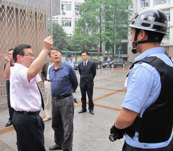 巡查校園過程中,顧校長(zhǎng)一行首先檢查了當(dāng)前學(xué)校校園安全工作,詳細(xì)詢問了解安防隊(duì)組建、警械裝備配備等相應(yīng)安防措施到位情況,重點(diǎn)查看了學(xué)校各功能室的建設(shè)、使用情況,走進(jìn)辦