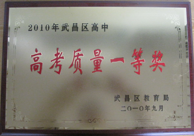 從剛剛結(jié)束的武昌區(qū)2010年中、高考質(zhì)量分析會(huì)上傳來(lái)喜訊,我校榮獲2010年高中高考質(zhì)量一等獎(jiǎng),這是我校連續(xù)第九次獲此殊榮。