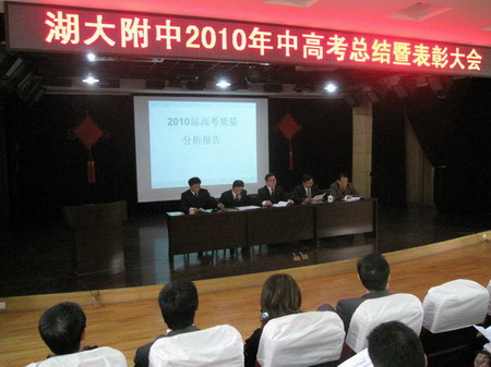 會議由黨總支書記楊元業(yè)主持,會上2010屆高三、初三年級主分別作了高、中考質量分析報告,總結了備考經(jīng)驗。2011屆畢業(yè)年級主任宣讀了2011年高、中考備考計劃。副校長馬春華宣布《2009-2010學年度教學質量表彰決定》,對這一學年在各級各類教學比賽、教科研及競賽輔導中獲得榮譽的教師予以表彰,對在中高考中做出貢獻的教師予以獎勵。