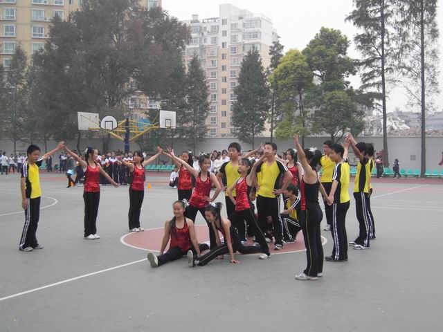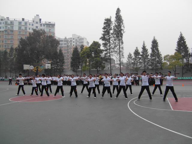 初二年級全體師生積極參加校園文化節(jié)活動,在健美操預(yù)賽中初二(2)班獲的第一名的佳績.