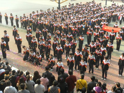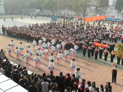 11月26日,校園內(nèi)彩旗飄揚(yáng),鼓聲震天,校文化節(jié)活動之一的趣味田徑運(yùn)動會勝利開幕。開幕式中,高二各方陣隊員隨著激昂的運(yùn)動員進(jìn)行曲,邁著整齊的步伐,精神抖擻地走過主席臺,展示出高二同學(xué)們團(tuán)結(jié)向上、積極健康的精神風(fēng)貌,贏得了主席臺上的領(lǐng)導(dǎo)和在場師生的陣陣喝彩。