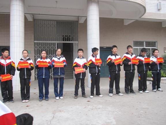 為了促進(jìn)學(xué)生養(yǎng)成良好的文明衛(wèi)生行為習(xí)慣,培養(yǎng)學(xué)生積極進(jìn)取的精神,構(gòu)建和諧的校園環(huán)境, 樹立學(xué)校的良好形象,依據(jù)2010年衛(wèi)生流動(dòng)紅旗評(píng)比方案,經(jīng)過體衛(wèi)藝處老師和值周班級(jí)同學(xué)11月份15次對(duì)各班室內(nèi)外清潔的檢查,按權(quán)重系數(shù)綜合各班檢查得分高低排序,報(bào)請(qǐng)學(xué)校批準(zhǔn)。學(xué)校決定授予初三(1)等10個(gè)班級(jí)為2010年11月份衛(wèi)生流動(dòng)紅旗班集體,具體名單如下: