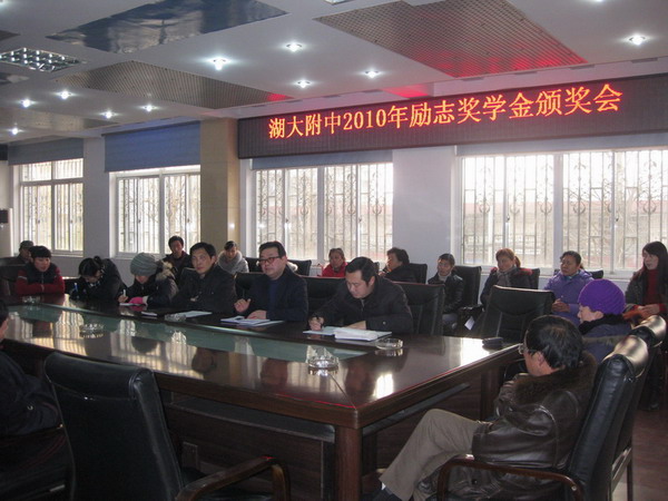 副校長劉朝新宣布《關(guān)于2010年湖大附中勵(lì)志獎(jiǎng)學(xué)金的決定》,并希望獲獎(jiǎng)的同學(xué)要珍惜榮譽(yù),謙虛謹(jǐn)慎,刻苦學(xué)習(xí),自強(qiáng)自立,勵(lì)志成才,報(bào)效祖國。