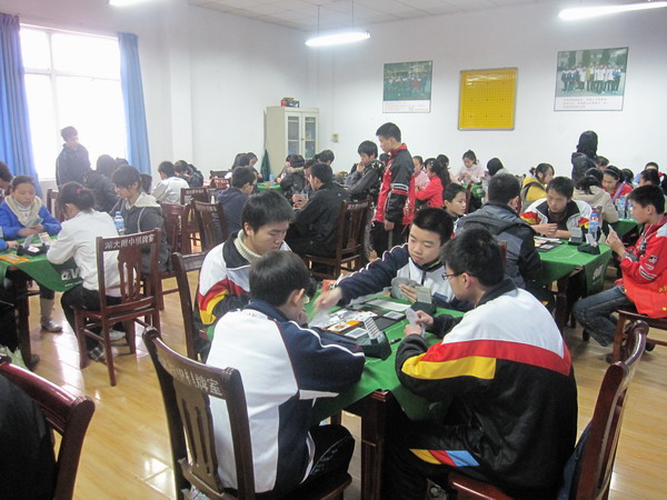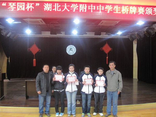 2011年3月20日,我校舉辦了“琴園杯”中學(xué)生橋牌邀請(qǐng)賽,鐵四院學(xué)校、臺(tái)北路中學(xué)、徐東路學(xué)校、琴園路學(xué)校、三角路中學(xué)等近10所學(xué)校的百余名學(xué)生參加了比賽,經(jīng)過8輪激烈角逐,鐵四院學(xué)校的戴慧平、李澄,高宇凡、黃森浩分獲得南北、東西方向冠軍。