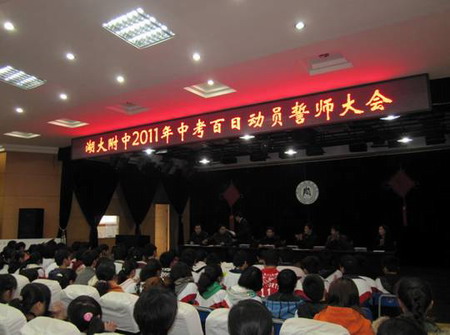 初中級(jí)部吳主任宣讀了本屆中考的奮斗目標(biāo),楊書記慷慨激昂地為學(xué)生們致勉勵(lì)詞。