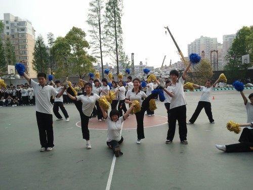 4月15日下午第八節(jié)課時(shí)間,湖北大學(xué)附屬中學(xué)的操場上一片歡騰,校第三屆校園健美操(啦啦操)比賽初賽落下帷幕。