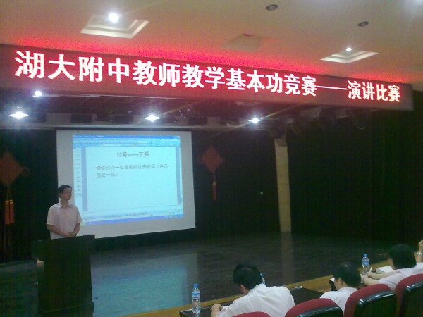 比賽分課堂教學、教案設(shè)計、課件制作和即興演講四個項目,要求40歲以下教師至少參加一項,參評教學能手者四項均參加。據(jù)統(tǒng)計,共135人次參加本次比賽,為歷屆參賽人數(shù)最多的一次。比賽方式采取現(xiàn)場抽題,限時完成,還邀請了本校優(yōu)秀資深的老師做評委,當場亮分,保證了比賽公開公正公平。