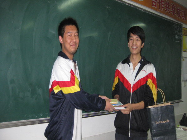 在最后一次班會(huì)上,高二年級(jí)各班的班長(zhǎng)們走進(jìn)了畢業(yè)班教室。代表學(xué)弟學(xué)妹們給學(xué)長(zhǎng)們送去了祝福。信中鼓勵(lì)他們?cè)诟呖嫉膽?zhàn)場(chǎng)上奮力一搏,期待著他們凱旋而歸。祝愿他們踏上人生新的征程,開啟新的美好生活。學(xué)長(zhǎng)代表表達(dá)了對(duì)高二年級(jí)同學(xué)的謝意,回贈(zèng)了禮物,同時(shí)也激勵(lì)學(xué)弟學(xué)妹們從現(xiàn)在開始應(yīng)該抓緊時(shí)間,為夢(mèng)想而努力。