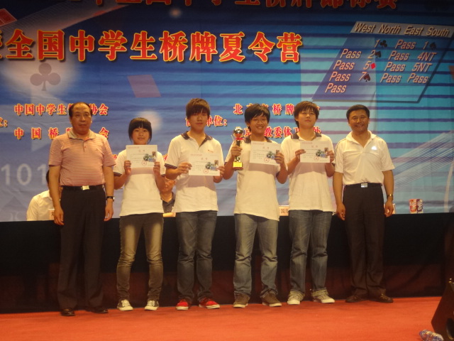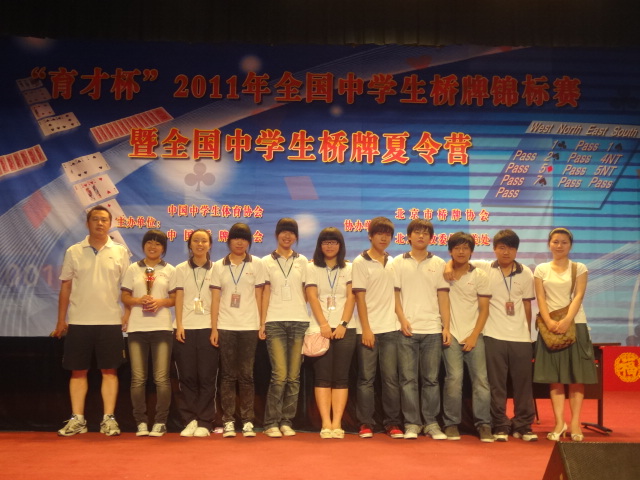 2011年8月4日—9日,全國中學生橋牌錦標賽在北京育才學校舉行,來自全國的92支代表隊參加比賽,我校派出了9名學生分別代表湖北大學附屬中學、湖北省參賽。在進行了5天9輪的瑞士移位賽角逐后,我校代表隊獲得高中組第七名的好成績,被評為一等獎。