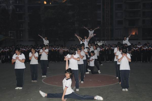 比賽現(xiàn)場(chǎng),動(dòng)感十足的音樂震撼全場(chǎng),參賽選手的服裝賞心悅目,矯健靈動(dòng)的身姿美輪美奐,青春的活力在這里盡情釋放,青春的激情被展現(xiàn)得淋漓盡致。除展現(xiàn)整齊劃一的動(dòng)作外,每支健美操隊(duì)的表演中都有支撐、托舉、跳躍等高難度動(dòng)作,現(xiàn)場(chǎng)的觀眾不時(shí)發(fā)出陣陣驚嘆和贊賞聲。王喜安、丁美芳、楊歆、向歡歡等老師更是積極加入學(xué)生的隊(duì)伍,師生共舞同樂,以完美的姿態(tài)向大家展示了高二師生的風(fēng)采,贏得了廣大師生的交口稱贊。經(jīng)過評(píng)選,其中高二(10)班、高二(9)班、高二(1)班分獲前三名。