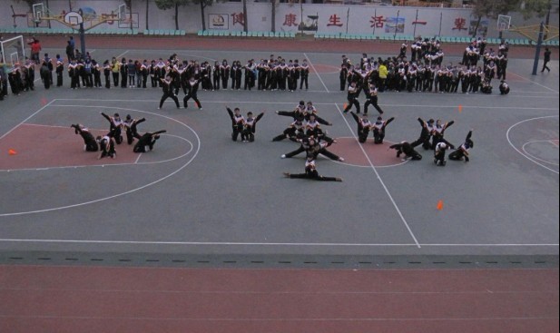 12月8日周四下午第四節(jié)課,操場(chǎng)上齊聚師生,在一片吶喊助威聲中拉開了第四屆校園健美操高一年級(jí)預(yù)選賽的序幕。