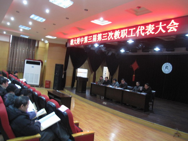 2012年1月12日下午,我校第三屆三次教職工代表大會隆重召開。30名教代會代表和12名列席代表參加了會議,會議由何鳳桃書記主持。