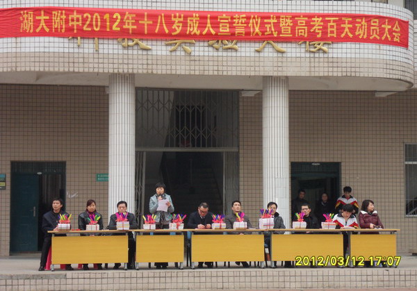 2012年3月9日下午,我校高三年級全體師生和家長齊聚操場,隆重舉行了“十八歲成人宣誓儀式及高考百天動員大會”。